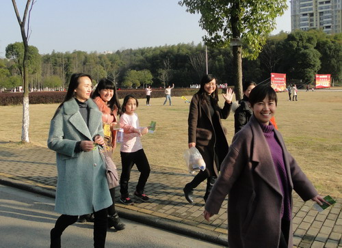 3月9日下午,春风和煦,天气晴朗,阳光灿烂,校园里开满了各色鲜艳夺目花朵。校体育训练馆前人声鼎沸,来自机关、各二级学院的700余名女教职工早早地在赛场等候,她们个个精神抖擞,跃跃欲试。她们兴致勃勃地参加了庆祝“三八”环校跑活动。