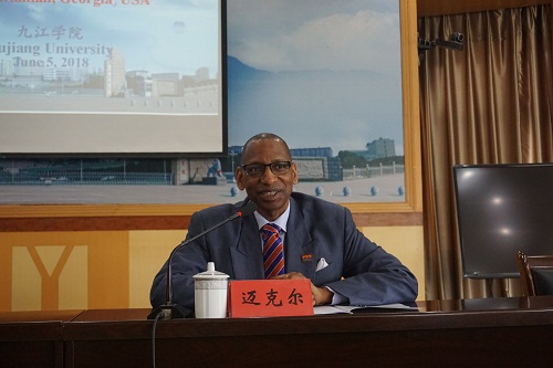 欢迎仪式上,刘晓东校长代表学校致欢迎辞,他首先表达了对迈克尔·莱尼团长及萨凡纳市教育工作者全体嘉宾的问候,对远道而来的美国客人表示热烈的欢迎。他简单介绍了九江学院的办学历史与规模、办学特色和国际交流情况。刘校长说,今年是永利yl23411集团官网第二次承接美国萨凡纳市教育工作者中国文化体验团,永利yl23411集团官网高度重视并做了精心安排:既有教学实践、又有学术讲座;既有大学座谈交流,也有中小学考察观摩;既有自然风光欣赏,又有人文景观体验。同时,我们还会走出九江,感受景德镇的陶瓷文化、北京的古都文化等。相信此次项目一定会为萨凡纳市教育工作者了解中国及中国文化、促进中美相互交流和友好起到了很好的作用。最后,刘校长对各位美国校长和教师积极参与孔院活动表示由衷的感谢,对迈克尔·莱尼团长为孔子学院的发展所付出的努力和心血表示赞赏,并相信在迈克尔·莱尼团长和永利yl23411集团官网选派的中方院长罗其娟的共同努力下,两校通力合作,萨凡纳州立大学孔子学院一定会发展得越来越好。