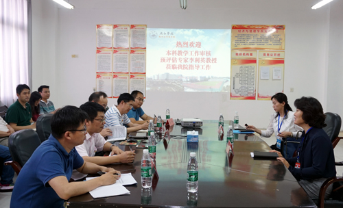 下午16:40—17:35,李利英教授听取了经济与管理学院长项益才的汇报。项益才介绍了经济与管理学院定位与目标、师资队伍、培养方案、保障体系、学生发展、办学特色等情况。李利英教授就学院特色建设、教学条件保障、人才培养等情况与学院相关人员进行了详细交流。