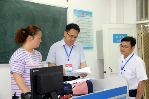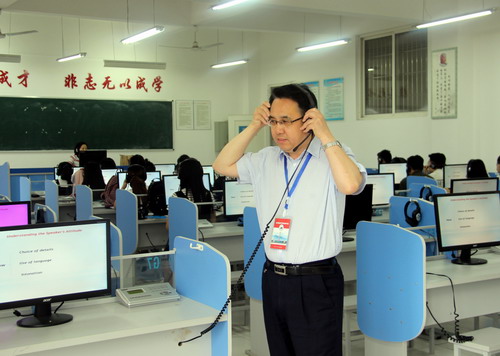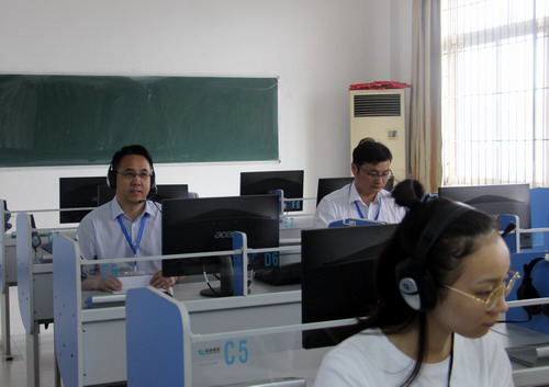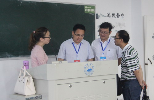 6月12日8:00—8:45,本科教学工作审核评估预评估专家组成员李明斌教授来到香远楼524教室和516教室,分别听取了外国语学院胡丹老师为外语A1613班讲授的《商务英语视听说II》课程和熊洁老师为外语A1714班讲授的《英语听力II》课程。李明斌教授检查了授课教师的教学材料,并对教学设备完好情况进行了检查。
