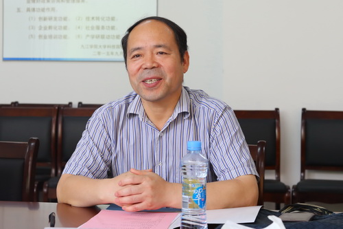 在大学科技园会议室举行的座谈会上,纪岗昌副校长对陈开明副书记一行的到来表示欢迎,介绍了学校的基本情况、历史渊源、教师队伍、学科建设、教学改革等情况。