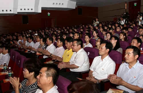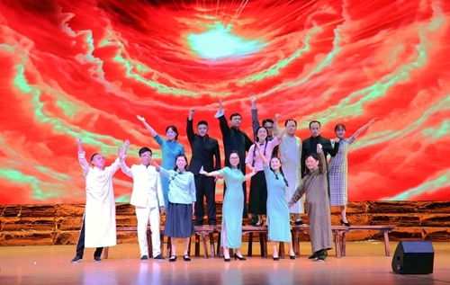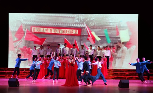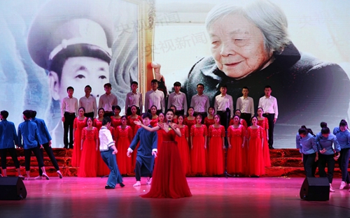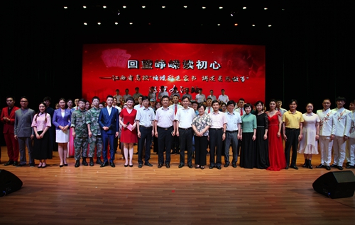 活动结束后,观看演出的领导上台与全体演员合影留念。