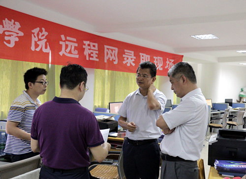 炎炎夏日,酷暑难耐。正当永利yl23411集团官网在江西本科批次投档录取期间,7月27日上午,校长刘晓东在副校长夏启国和招生与就业处处长肖国丰等的陪同下,看望了在招生录取一线的工作人员。