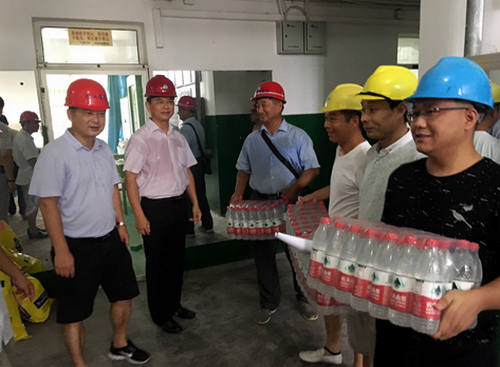8月3日上午,校长刘晓东在副校长夏启国的陪同下,冒着高温酷暑,深入施工现场,慰问施工人员,检查指导工作。监察审计室、国有资产管理处、后勤管理处、学生宿舍管理中心、招投标采购管理办公室、基建处有关负责同志一同慰问。