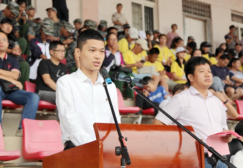 教师代表、基础医学院张杰博士在发言中代表全校教师向新同学的到来送上祝福和希望,并表示在学习工作生活中将为同学们提供全面的精心指导和悉心帮助。希望同学们珍惜大学的学习机会,刻苦学习、独立生活、自我设计、关爱感恩,时刻以“竞知向学,厚德笃行”校训精神鞭策自己,用青春的激情和智慧,放飞梦想,谱写人生精彩的一页。