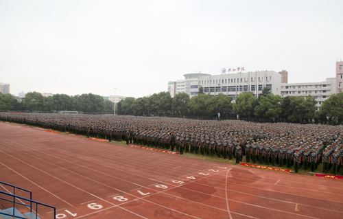 在会操表演中,同学们踏着整齐的步伐,喊着嘹亮的口号,精神抖擞、气宇轩昂的正步走过主席台接受与会领导及武警九江支队领导的检阅。“竞知向学, 厚德笃行”;“努力学习,振兴中华”......这些口号彰显着当代大学生报效祖国的豪情壮志和青春的蓬勃朝气,也展现了当代大学生英姿勃发的精神风貌。