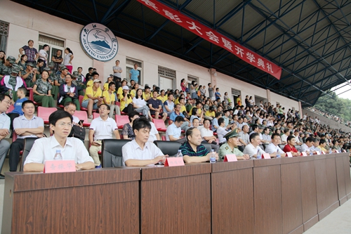 军训总结表彰大会结束后,随即进行了开学典礼。校长刘晓东作了热情洋溢的讲话。他首先代表党政及全体教职工对2018级新同学表示热烈的欢迎,对承担军训训练任务的武警九江支队表示衷心的感谢。他指出,大学是人生的新起点,也是求知求学,成才成人的关键阶段,一定要好好珍惜和把握,认真探索和体验。你们选择了一所有历史、有规模、有特色、有潜力的大学。学校坐落于中国魅力城市九江,这里地理位置得天独厚,地处庐山之麓、长江之滨、鄱湖之畔;这里历史文化底蕴深厚,是东晋田园诗人陶渊明、北宋“江西诗派”宗师黄庭坚、近代国学大师陈寅恪的故乡,李白、白居易、苏轼等历代文豪都曾在这里留下光辉的足迹和不朽的诗篇,白鹿洞书院更是开启了千年高等教育的历史,这里自古以来就是文人雅士读书修行的圣地。相信你们在九江学院将亲身感受到“登高壮观天地间,大江茫茫去不还”的豪迈情怀;感悟到“不识庐山真面目,只缘身在此山中”的人生哲理;领略到“长恨春归无觅处,不知转入此中来”的生命惊喜。刘校长给同学们提出了三点希望。第一,要心怀天下,无愧于国。希望同学们在今后的求学生涯中,树立远大理想、心系家国情怀,牢记国家之需,努力使自己成为对国家、对民族、对社会有益的合格人才;第二,要砥砺品质,无愧于人。大学阶段是人格品质形成的重要阶段。希望同学们要坚守道德和良知的底线,承担起更多的时代责任,努力使自己成为道德高尚、意志顽强、人格健全的人;第三,要惜时好学,无愧于己。大学生活丰富多彩,但也短暂易逝,希望同学们时刻牢记“竞知向学”的校训,珍惜时光,奋发图强,为实现人生理想、报效祖国奠定坚实的基础。