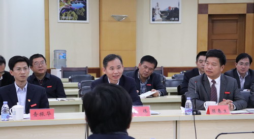 为进一步深入落实党的十九大提出实施“乡村振兴战略”的部署,深入推进永利yl23411集团官网扶贫合作工作的开展,10月30日下午,九江学院、武宁县扶贫合作推进工作座谈会在永利yl23411集团官网行政楼一号会议室举行。校党委书记赵伟,副校长陈春生,党委委员、副校长查振华,武宁县委书记杜少华,县委副书记、县长李广松,县委常委、农工部长刘斌,县委常委、宣传部长卢洪温,县委常委、组织部长杨娟及党政相关职能部门负责人,校党委委员、组织人事部部长王殿元及相关职能部门、二级学院负责人,永利yl23411集团官网驻东山村第一书记兼党支部书记、官莲乡党委副书记谭翊泉参加了座谈会。座谈会由副校长陈春生主持。