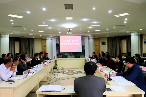 双方就武宁县“乡村振兴战略”研究院成立方案进行了探讨。参加座谈会的部分负责人就研究院成立方案谈了自己的想法,并作了表态性发言。