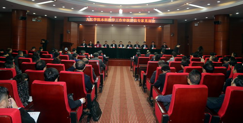 朱林生代表专家组对本科教学工作审核评估工作进行说明,介绍了本次审核评估专家组组成人员以及本科教学审核评估的目的、意义、基本程序、内容、方式方法与工作任务。他指出,我们专家组此行的工作任务就是在学校自评报告、教学状态分析报告的基础上,进校实地诊断考察。审核评估的核心是“对学校的人才培养目标与培养效果的实现状况进行评价,也就是用学校自己确定的人才培养目标”的这把尺子“来衡量自身人才培养的整体效果”,考察培养效果和培养目标的达成度,还要重点考察学校办学定位和人才培养目标与国家和区域经济社会发展需求的适应度,学校教师和教学资源条件的保障度,学校教学质量保障体系运行的有效度,学生和用人单位的满意度。审核评估的目的在于“人才培养多样化,强调尊重学校办学自主权,体现学校在人才培养质量中的主体地位”。教育部提出专家工作组工作理念是“对国家负责,为学校服务”,“对国家负责”就是评估的手段来评判人才的培养质量,促进学校不断完善质量保障体系建设,提高人才培养质量;“为学校服务”就是与学校平等交流、相互合作,共同为学校提高教育教学质量献计献策。审核评估是聚焦问题、带着问题的评估,进校之前,我们已经仔细阅读了学校提交的《自评报告》和《数据分析报告》,通过这两个材料,我们已经初步掌握了学校的基本情况。我们对学校的发展建设非常肯定,九江学院办学历史悠久,近年来的发展态势也非常好,这是大家的共识。同时,我们也发现了学校存在的不足,对于发现的问题,我们要通过进一步深入考察进行审视,比如产生的原因是什么?大概解决的方向和措施是什么?这些问题我们只有审完了才可能最后形成考察报告。评估期间,我们会采取听课、走访、深度访谈、开座谈会、抽查试卷和毕业论文、走出校门深入到实习基地和用人单位去印证的方式,对学校本科人才培养工作进行一次全面细致的现场考察,请大家以平常心、学习心对待审核评估,直面问题,不要回避,畅开心怀与我们一起谈,一直探讨、一起思考,一起来把脉问诊学校的办学思路和办学质量,一起来梳理学校的人才培养面临的困难和存在的问题,一起为学校的发展出谋划策。朱林生表示,在审核评估期间,专家组将以对国家负责,为学校服务的责任感,严格自律,坚决遵守审核评估的“四项规定”及“十不准”,共同建设“安静、干净、尊敬”的评估工作风尚,请同志们、老师们监督我们!