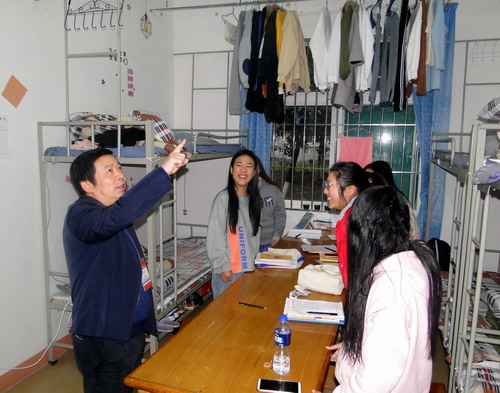 朱林生组长先后到学生宿舍18栋(女生)和25栋(男生)走访,并与同学们亲切交流。