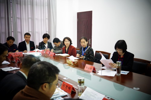 评估专家周立亚教授与后勤管理处和基建处负责人座谈。