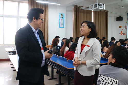 2、 评估专家孙明贵教授听取会计学院陈瑶瑶老师讲授的《财务管理》课程并与教师交流。