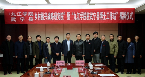 刘晓东强调,今天的揭牌仪式,标志着九江学院与武宁县政府战略合作全面启动。在九江市委市政府和武宁县委县政府的大力支持下,九江学院将充分发挥学科专业、人才智力和技术研发优势,扎实有效推进各项合作工作,进一步拓展合作范围和内容,努力把武宁县乡村振兴战略研究院和博士工作站打造成乡村振兴战略及“三农”政策研究的智库,为武宁生态文明建设和绿色发展提供更多依据。帮扶东山村在第一阶段实现“脱贫”的基础上,通过第二阶段的扶贫工作,使东山村真正实现“致富”,把东山村打造成在脱贫攻坚工作中有特色、有亮点、有业绩的滨湖第一村。积极探索研究新时代武宁“乡村振兴战略”的实现路径,努力形成具有武宁特色的乡村振兴模式,为推动武宁县域经济社会发展做出应有的贡献。