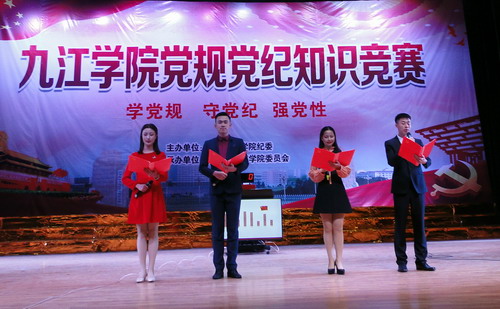 为深入贯彻党的十九大战略部署,持续加大党规党纪的宣传、教育和普及力度,切实增强全校党员纪律意识和规矩意识。11月中旬至12月中旬,学校开展党规党纪知识竞赛活动,并于12月16日晚上在主校区大礼堂进行了决赛。经过激烈角逐,大赛共决出一、二、三等奖8支队伍,优秀组织奖8个单位,优秀选手20名。校党委委员、纪委书记李广欣,校党委委员、党委组织人事部部长王殿元,校党委委员、宣传部部长冯健和校纪委、学生处、团委及各参赛单位相关领导出席知识竞赛决赛现场活动,并为获奖队伍、单位和相关人员颁奖。此次竞赛活动由校纪委主办,校团委承办,各二级党委协办。