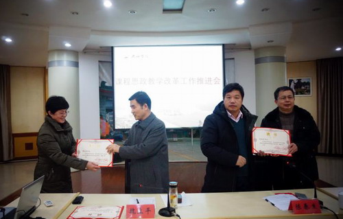 会上,党委委员、宣传部部长冯健宣读了《九江学院课程思政教学改革建设实施方案》。教务处处长陈小林宣布课程思政指导委员会专家名单。校党委副书记魏立平、副校长陈春生分别为汪力平、陈胜才等13位专家颁发聘书。