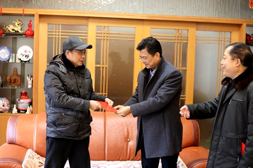 每到一处,校领导都与老同志亲切交谈,询问老同志身体和生活状况,祝愿他们在新的一年里身体健康,家庭幸福。校领导向老同志简要介绍了过去一年学校首届党代会召开、教育部审核评估顺利通过、新一轮申硕及校区教育资源整合等方面的情况。