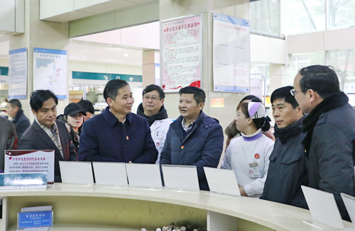 在门诊及住院部,校领导与医护人员亲切握手。虽然临近春节,医院患者却持续爆满,工作量较往年大大增加,医务人员每天都加班加点,经常忙得连吃饭都顾不上。赵书记关切地说,广大医护人员坚守在一线,辛勤付出,我们代表学校向大家表示感谢和慰问,希望大家在欢度春节的同时,确保医疗安全,为患者做好服务服,为全市人民的生命健康保驾护航。赵伟书记还强调要进一步加快推进新大楼建设,倒排时间节点,争取早日完工投入使用,全面提升服务能力。