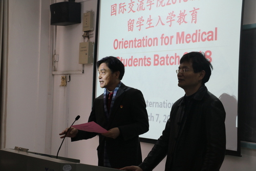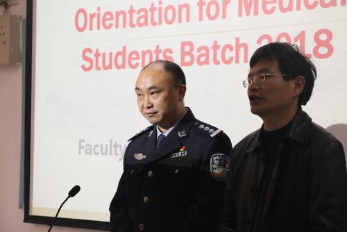 最后,国际交流学院院长夏修龙介绍了九江学院医学教育、临床医学专业教育基本情况及学习方法,他强调了安全的重要性,同时希望同学们加强汉语学习和专业学习,顺利毕业,不辜负父母的期望。