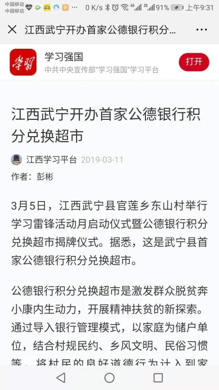 学习强国平台:九江学院扶贫点江西武宁东山村开办首家公德银行积分兑换超市