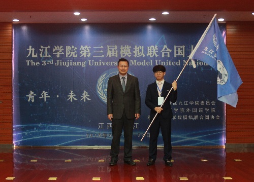 会上,校团委书记闫来英宣读了《关于成立九江学院模拟联合国协会的批复》,学生处处长刘平向模拟联合国协会授旗。大会委员会主席团指导、华中科技大学博士生江冬同学代表主席团致词,永利yl23411集团官网模联协会会长陈跃同学作表态发言。
