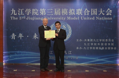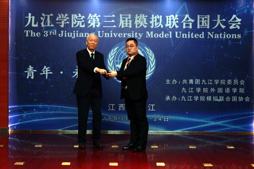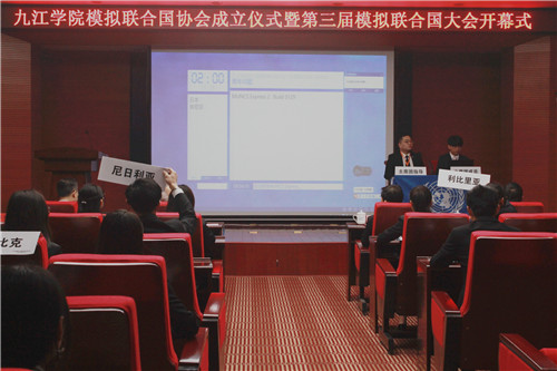 3月22日上午,九江学院模拟联合国协会成立暨第三届模拟联合国大会开幕式在逸夫报告厅举行。校党委副书记魏立平、中国模拟联合国常务理事、资深外交官华黎明大使出席开幕式,本次模联大会以“青年·未来”为主题,有来自华中科技大学、武汉大学、华东交通大学、长沙学院和永利yl23411集团官网的50名代表参加,学生处、团委、外国语学院负责同志参加了大会。开幕式由校团委副书记任丹阳主持。