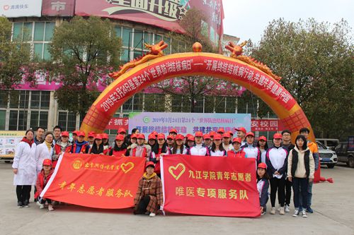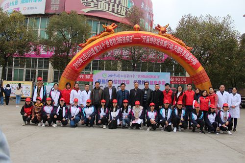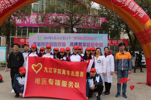 3月24日是第24个“世界防治结核病日”, 为提高永利yl23411集团官网师生对结核病防治知识的认知水平、预防意识和防控能力,促进师生维护校园环境、改变不良习惯、保持健康行为、主动监测和早期发现、治疗肺结核,有效地预防和控制结核病在永利yl23411集团官网校园内发生与传播,3月22日上午,校医院联合九江市疾控中心、濂溪区疾控中心、濂溪区人民医院等单位在永利yl23411集团官网三食堂前的广场上举行以“开展终结结核行动,共建共享健康中国”为主题的“结核病防控知识进校园”宣传教育活动,九江学院副校长王万山、九江市卫健委党委委员、九江市疾控中心肖云主任等领导在永利yl23411集团官网学生处刘平处长、校医院贾宗林院长的陪同下与学校学生唯医志愿者们及各二级学院的学生代表们共同参加了此次活动。