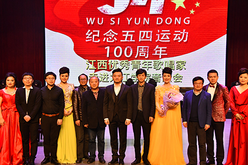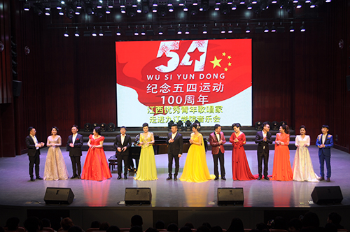 本次音乐会由江西省文化艺术发展促进会主办,永利yl23411集团官网艺术学院承办,来自全省各大高校及艺术团体的14名优秀青年歌唱家参加此次演出。永利yl23411集团官网青年教师孔江闽、王细梅参加了演出,蔡园园担任钢琴伴奏,音乐会由艺术学院声乐教研室、团委组织协调。音乐会以纪念五四运动100周年为主题,内容由《红旗颂》、《好儿好女好江山》、《松花江上》、《跟你走》、《大江南》、《我爱这土地》、《年轻的朋友来相会》等优秀经典曲目组成。