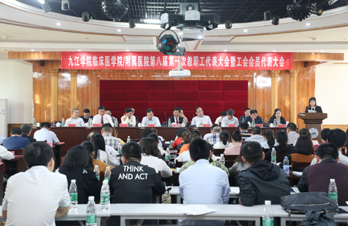 市总工会副主席徐胜发表讲话,他代表九江市总工会向参会代表及辛勤耕耘、默默奉献在各个岗位上的全体职工致以亲切的慰问和崇高的敬意,对附院工会工作取得的突出成绩给予了高度评价,并对该院工会下一步工作提出了具体要求。徐副主席表示,希望院工会坚定正确的政治方向,把握工会时代主题,坚持服务职工,夯实工会基层基础;希望与会代表积极参与医院的院务公开、民主管理、积极反映广大职工的心声和诉求,凝心聚力谋发展,化解矛盾促和谐,切实起到党政领导与职工群众的桥梁纽带作用,当好附属医院改革发展的排头兵,以优异成绩迎接新中国成立70周年。