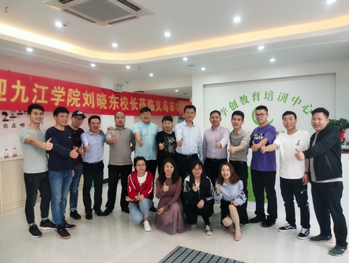 在九江学院义乌校友会会长刘鹏飞等的陪同下,刘校长一行首先参观了2016届毕业生廖洪强创办的学创教育培训中心。刘校长指出教育培训行业是一个具有繁荣前景的行业,希望学创教育办学要严谨有条,将安全问题放在首要位置,将教学质量、口碑及服务作为可持续发展的核心。