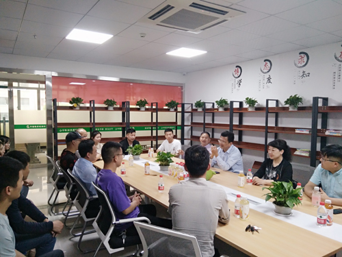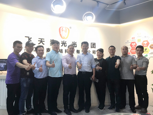 随后,刘校长参观了校友会会长刘鹏飞创办的飞麦科技有限公司。刘鹏飞向刘校长介绍了公司现在的概况以及公司未来的发展目标和前景。刘校长指出,公司的发展要靠内部人员的团结,大家要心往一处想、劲往一处使,鼓励同行的人向刘鹏飞等杰出校友学习。同时希望在义乌工作的校友,应加强联系、互相交流、互帮互助。