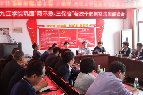 走访入户前,在东山村村部召开了“九江学院落实中央脱贫攻坚专项巡视江西反馈问题整改推进会”和“九江学院巩固‘两不愁、三保障’帮扶干部调整培训部署会”。