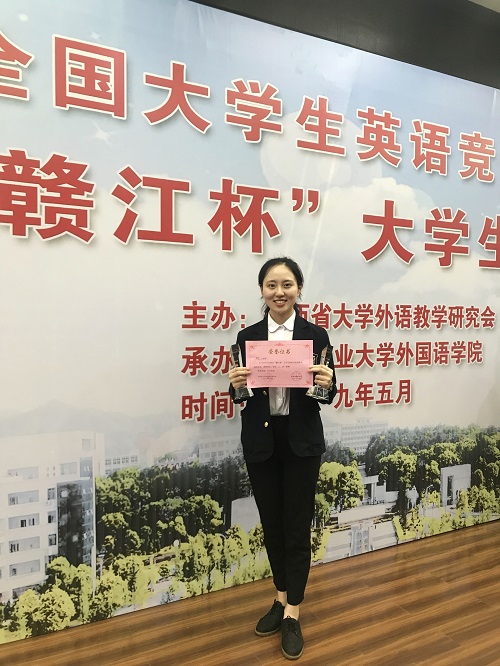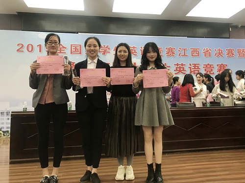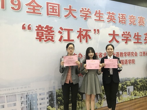 赵宋文(指导邱淼洋、韩健)和胡芳(指导黄雯)两位老师分别获得优秀指导教师奖。比赛成绩的取得来之不易,较好地展示了九江学院外语教学成果,进一步激发了老师们的教学热情。