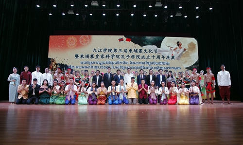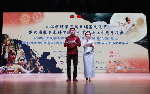 2019年是九江学院作为承办院校建设的柬埔寨皇家科学院孔子学院揭牌10周年,5月13日晚,“第三届柬埔寨文化节暨柬埔寨皇家科学院孔子学院成立十周年庆典晚会”在九江学院在礼堂举行。来自柬埔寨的专家团、艺术团成员以及永利yl23411集团官网柬埔寨留学生和中国师生欢聚一堂,共叙中柬传统友谊,共享孔院发展成果,共商人文交流事宜。