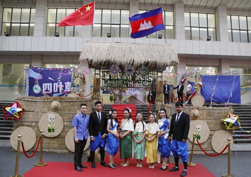 当晚7点整,校党委书记赵伟、中国驻柬埔寨前大使张金凤、柬埔寨皇家科学院院长宋独(Sok Touch)、柬埔寨驻中国学生会名誉会长吴天(Um Vuty),共同为“第三届柬埔寨文化节暨柬埔寨皇家科学院孔子学院成立十周年”庆典剪彩。