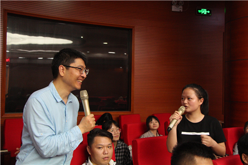 詹朋朋博士与大家分享了自己的成长经历,通过展示诸多创业案例,生动地告诉大家在创业路上容易出现的问题和应当规避的问题。传授了商业计划书的写作方法以及创业答辩中的实战技巧。詹博士的分享热情洋溢,生动有趣,紧密连接双创前沿,实战性强,对当前的创新创业大赛有重要的指导意义。报告现场互动气氛热烈,各位同学积极参与,踊跃提出了自己的想法和问题。詹朋朋博士一一回答了如何get创新点,大学生创业资源如何获取,从评委角度如何看待高分项目的特点等问题,让参赛同学收获满满。