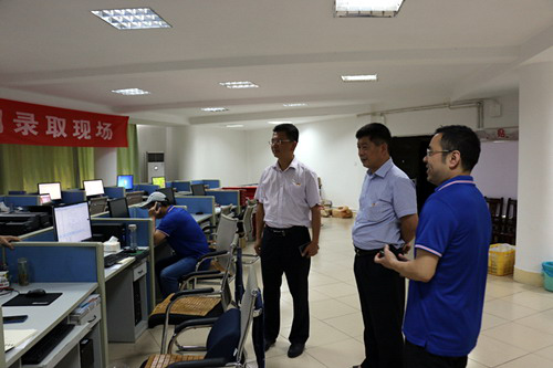 随后,刘校长、夏副校长又来到二号行政楼招生咨询中心和就业创业指导服务中心,看望慰问了负责招生咨询服务和办理各项就业事务的师生们,并详细地了解了招生咨询的有关情况,再三叮嘱大家注意防暑、保重身体,并要求招生与就业处要切实做好各项保障工作,为全体工作人员排忧解难。