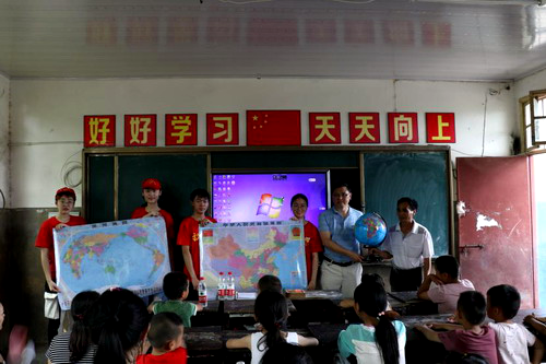 7月1日,旅游与地理学院组织12位各年级学生骨干同组成“赣北阳光守护服务队”来到武宁县官莲乡东山村,通过关爱留守儿童,开展党团知识、地理知识、硬笔书法等丰富多彩的课堂教学活动去扩展孩子们的视野,激励他们好好学习,让他们勇于表达,不断突破自我,取得进步,同时了解他们的身心健康发展,给予他们力所能及的帮助等活动形式,献爱新农村建设,投身精准扶贫工程,在实践中强化社会责任,收获自身成长。