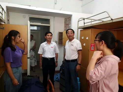 在走访看望中,魏立平副书记仔细询问了学生住宿安排情况,叮嘱宿管中心工作人员继续做好后勤保障工作。魏副书记还专程来到自己的联系班级政法A1611班,询问同学们搬迁过程中存在的困难,得知搬迁工作高效有序,魏副书记高兴地夸奖同学们是一支吃苦能干的队伍。