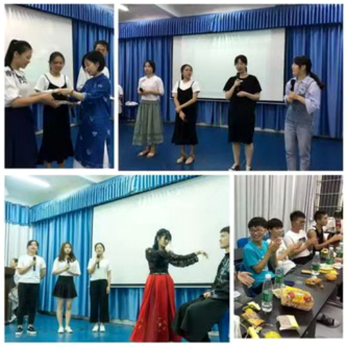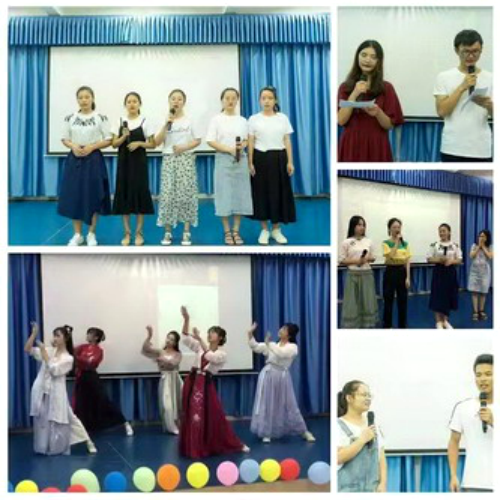 班级联欢活动在女生小合唱《但愿人长久》中拉开帷幕,配乐朗诵《月下独酌》、《乡愁》把观众们带回李白和余光中的诗情世界,相声《陶渊明》由同学自编自导自演,调侃中充满了对九江本地大文豪的敬仰,汉服舞蹈秀《广寒宫》中婀娜的身姿与精致的服饰充分展示了传统文化的魅力。独唱《一介书生》好似清风拂面;传花得令,诗词接龙,诗词“飞花令”紧张的气氛感染了全场。整场联欢会,在班主任邹老师的专业指导下,全体同学用心筹划、精心准备。一台形式多样、内容丰富的节目,充分展现出A1822班同学在诵读、舞蹈、歌唱、文艺创作等方面的才能,节目以宿舍为展示单元更彰显了班级凝聚力,这些都得到了在场领导和老师的肯定。最后在班主任邹经博士带领下,全班高唱《我和我的祖国》,赵书记主动走上舞台与师生齐声高唱,将联欢活动氛围推向高潮。