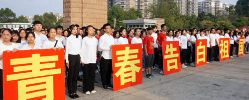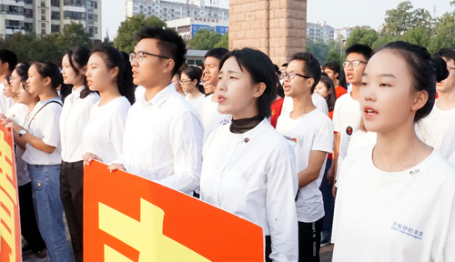 升旗仪式上,青年学子表演了诗歌朗诵《我爱你中国》,演唱了歌曲《今天是你的生日》。千名学子摆出了红色的“中国”的造型,集体青春告白祖国。