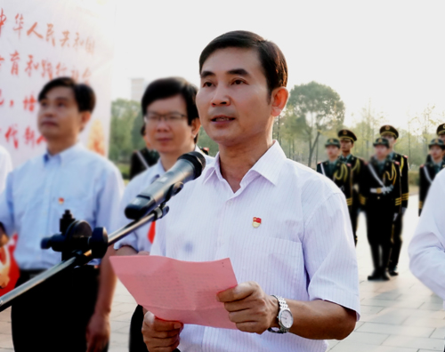 升旗仪式上,魏立平作了讲话。他说,今天,我们在这里隆重举行升国旗仪式,热烈庆祝中华人民共和国成立70周年。在这喜庆而庄严的时刻,全校师生和亿万中华儿女共同为新时代伟大祖国的发展感到无比自豪,对实现中华民族伟大复兴的中国梦充满信心!魏立平指出,国家强盛人民幸福,九江学院的发展源于祖国的强盛伟大,九院人经历了中华变迁,复兴强大的百年芳华,奋进在新时代的征程上,我们要勇敢地担当起为党育人、为国育才的神圣使命。魏立平寄语青年学子,要厚植爱国之情,激发报国之志,投身人民的伟大奋斗。同人民一起奋斗,青春才能亮丽;同人民一起前进,青春才能昂扬;同人民一起拼搏,青春才能无悔。希望同学们努力成为有理想、有本领、有担当的时代新人,在新时代干出一番事业,不辜负这个伟大时代所赋予的荣光和际遇。