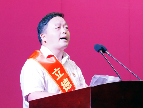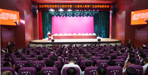 会上,获得2018年度“立德树人楷模”的10位教师代表丁志华、王苓、许成锋、吴传保、张化浩、张应华、郭钊、曹晖、傅文学、董云鹤先后上台作了先进事迹报告。他们从不同侧面、不同角度满怀深情地介绍了他们的先进事迹,畅谈了任教以来的育人事迹和所思所想,表达了对学校以及教育事业的热爱。他们质朴的语言、崇德向善的高尚情操、勇于担当的崇高精神感动了每一位在场的师生,赢得了阵阵热烈的掌声。整场报告精彩生动,催人奋进,使师生们深受教育。