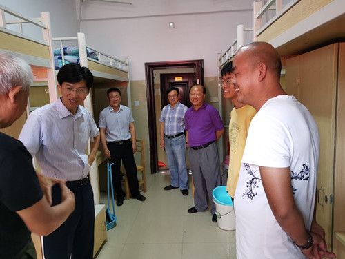 查振华亲切地询问同学们都来自哪里,生活环境还习不习惯。在2号楼一寝室,当女生回答来自瑞金时,查振华说,瑞金是个革命老区,有着很丰富、悠久的红色革命历史,希望该同学能为艺术学院的学子们分享家乡的红色革命故事。