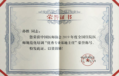 8月30日至31日,由中国医师协会主办的“2019年住院医师规范化培训高峰论坛”在北京召开。临床医学院/附属医院住培外科基地主任孙胜应邀参加会议,并荣获2019年度国家住院医师规范化培训“优秀专业基地主任”荣誉称号,江西省仅三人获得此称号,孙胜主任为赣北地区唯一获奖者。