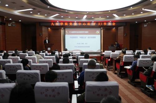 为深入理解领会党的十九届四中全会精神,11月15日下午,学校在逸夫图书馆报告厅召开党委中心组(扩大)学习会暨江西高校“十百千宣讲团”宣讲党的十九届四中全会精神报告会。校党委书记赵伟主持会议并讲话。校党委副书记魏立平,副校长陈春生、杨耀防、夏启国,校纪委书记李广欣,副校长陈小林,校党委委员王殿元、冯健、刘遵海,全校副处以上干部,各民主党派、知联会、留联会负责人参加会议。中共江西省委党校对外培训部主任、研究生导师李志强教授应邀作《擘画坚持和完善中国特色社会主义制度,推进国家治理体系和治理能力现代化的行动纲领--学习宣传贯彻党的十九届四中全会精神》辅导报告。