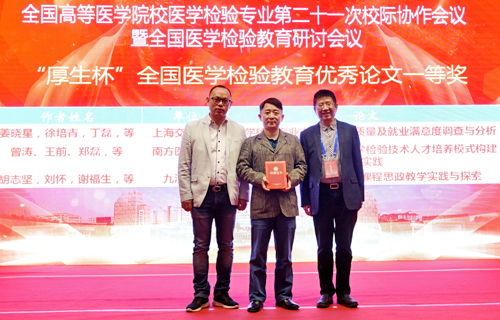 会议同时举办了“人卫杯三全育人青年教师演讲比赛”、“厚生杯全国医学检验教育优秀论文奖评审”,并举行了颁奖仪式。永利yl23411集团官网临床医学院/附属医院青年教师段训新、谢福生分别荣获“人卫杯三全育人青年教师演讲比赛”二等奖,胡志坚教授等荣获“厚生杯全国医学检验教育优秀论文奖”一等奖。