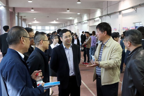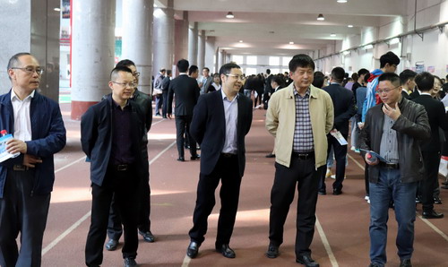 在招聘会现场,校领导与用人单位代表、毕业生代表进行了亲切交谈,详细了解了用人单位提供的岗位、资薪、待遇、环境等信息;详细询问了毕业生的求职意向和应聘情况。