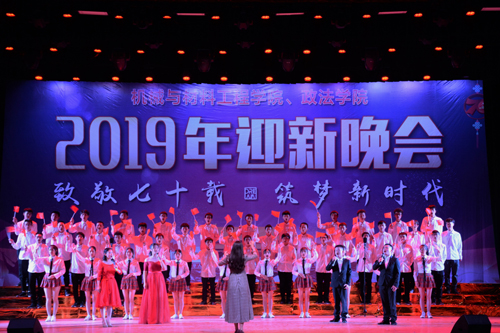 11月2日晚,政法学院与机材学院在永利yl23411集团官网大礼堂联合举办“致敬七十载,筑梦新时代”主题迎新文艺晚会。校党委副书记魏立平,副校长纪岗昌,副校长陈小林到场观看,学生处、校团委相关负责人和政法学院、机材学院党政领导、教职工代表及全体2019级新生一同观看晚会。
