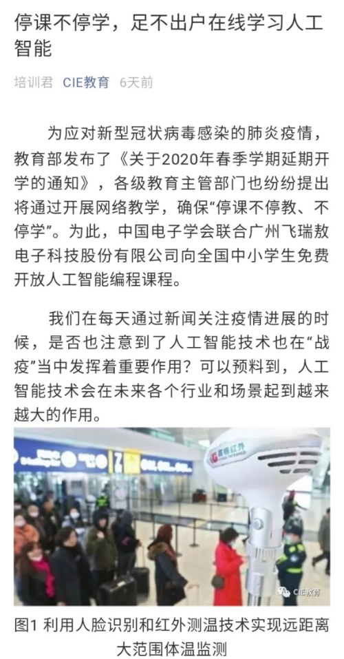 连日来,新型冠状病毒的疫情牵动着全国人民的心。2月3日,习近平总书记主持中央政治局常委会会议并发表重要讲话,指出“战胜疫病离不开科技支撑”。教育部迅速部署,要求防控疫情期间利用网络平台“停课不停教、不停学”。民盟九江学院委员会快速响应,发挥九江学院民盟与广州民盟协同联动的资源优势,开展了由全国性学术类权威机构中国电子学会隆重推出的人工智能教育课程在线学习,为全国中小学提供优质免费的人工智能教学资源、编程学习和辅导服务,助力防控疫情期间停课不停学。